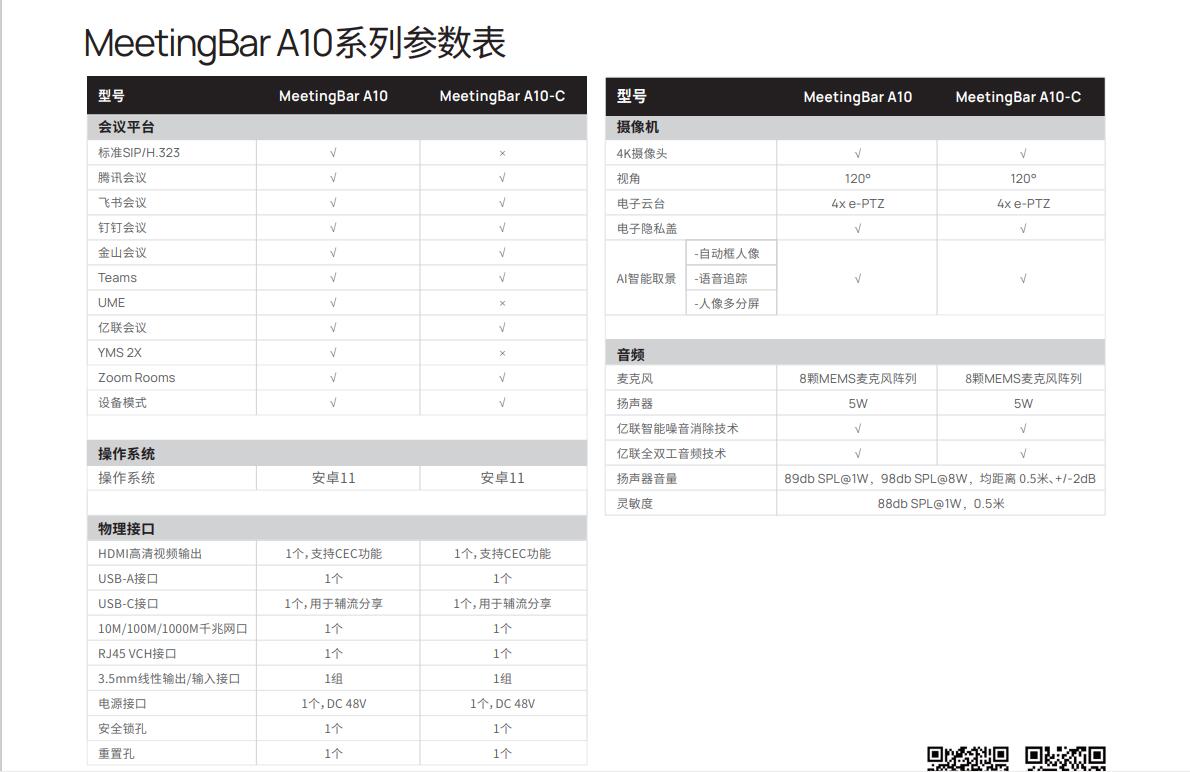 MeetingBar A10系列支持哪些会议平台(参数对比)