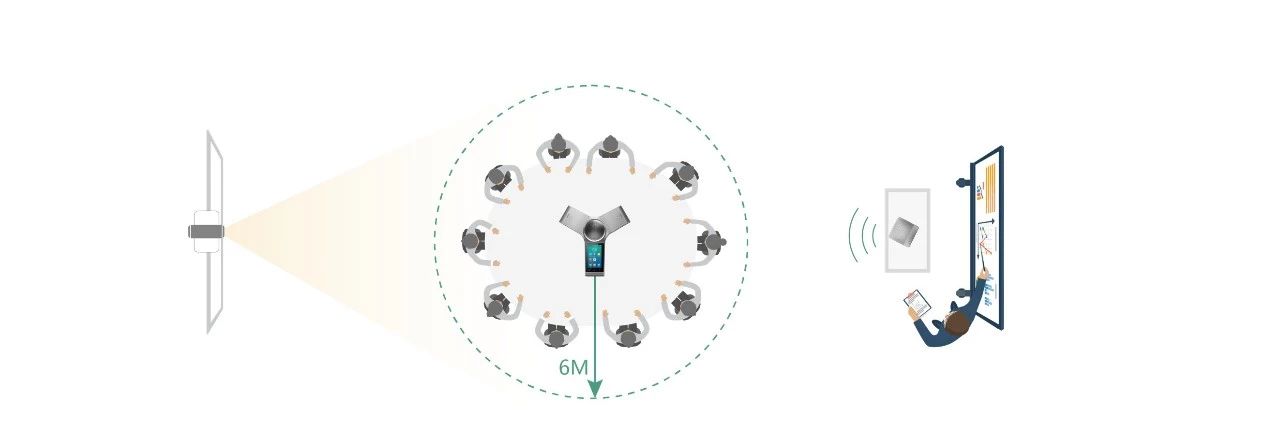 你也可以选择VC500搭配会议话机CP960版本:采用5寸高清触控屏,配置哈曼卡顿扬声器,支持360°全向拾音,优质拾音半径长达6米,提供良的音响体验。