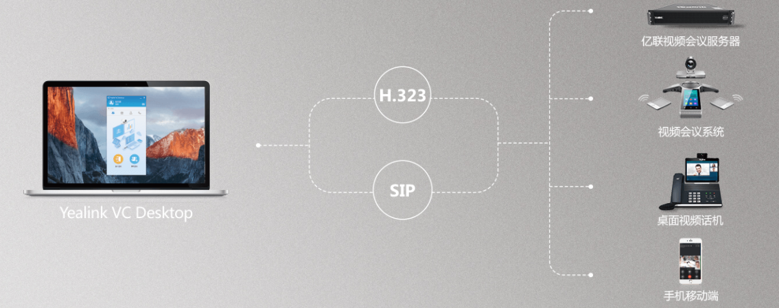 视频会议系统需求有良好的兼容性,除对自身版别升级有兼容性和缜密性外,还需求与其它品牌产品的音视频信号的互联互通的才能。亿联远程视频会议支持H.323及SIP协议,与业界主流的标准系统和终端具有良好的兼容性及互操作性。