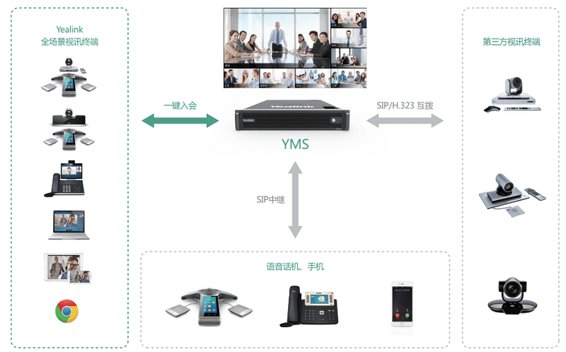 亿联的音视频引擎和云平台通信,为用户打造一站式视频会议解决方案,产品线覆盖视频会议平台及云服务、视频会议室终端、桌面视频话机、PC软终端、移动APP,满足用户“会议室、个人桌面、移动办公”全场景的试用需求。高清音视频质量、易部署易使用,有效解决了长期阻碍视频会议普及的音视频质量不理想、网络兼容性不好,设备使用复杂,部署维护成本高,促进专业视频会议在企业及行业客户中的普及,帮助用户提升运营效率与竞争力。