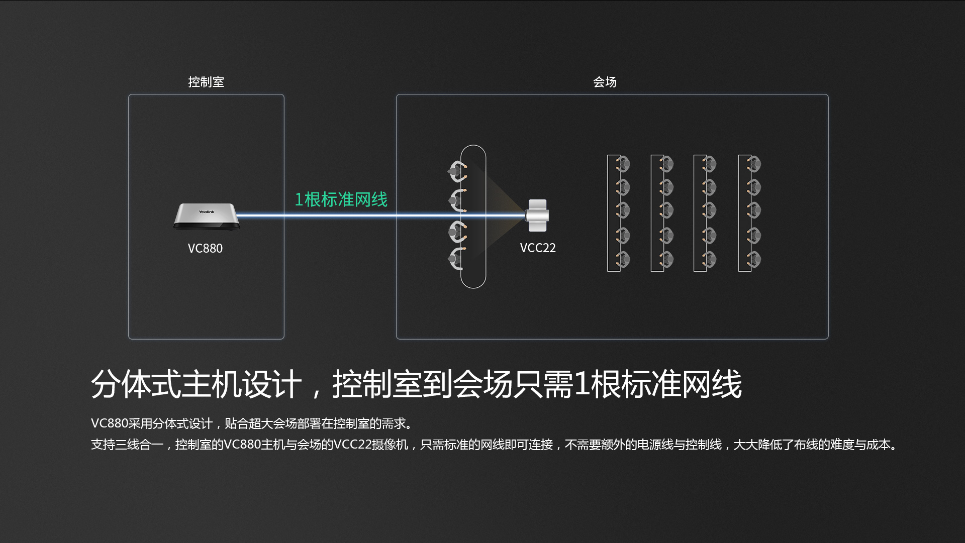 分体式终端,适用于会议室集成应用,内置24方MCU.