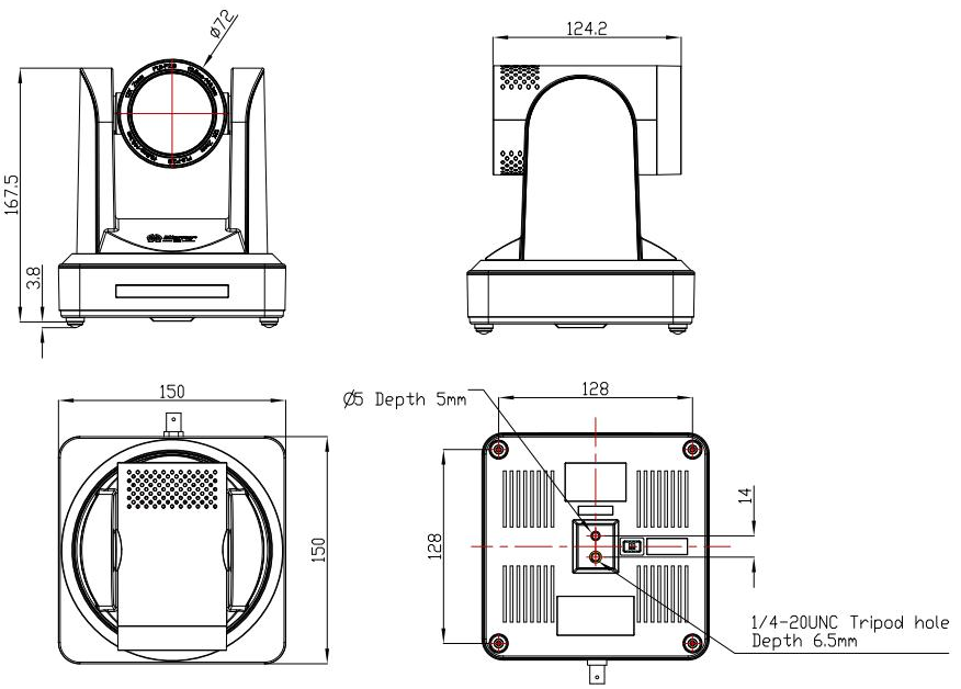 超级静音云台:采用高精度步进电机以及精密电机驱动控制器,确保云台低速运行平稳,并且无噪声。