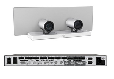 思科SX80是全球首款支持H.265协议的视频终端,它支持多达3块屏幕,同时具有丰富的音视频接口,便于客户自主搭建大型的视频会议环境。H.265编码技术使用户可以在低带宽的环境下也能获得全高清的体验,相同画质所需的带宽比传统H.264节省50%。可选配的SpeakerTrack 60语音跟踪双镜头拍摄系统采用思科4k分辨率超高清镜头,能够智能地发现大型会议室中正在说话的发言人,并迅速放大以显示他或她的图像。智能面部识别和声音三角定位技术可使镜头全程跟踪发言人从会议桌到白板的移动过程,并在下一位发言人开始说话时,无缝移至该发言人。从而实现会议中讲话人员画面的自动捕捉与切换,使会议环境设计更具人性化。