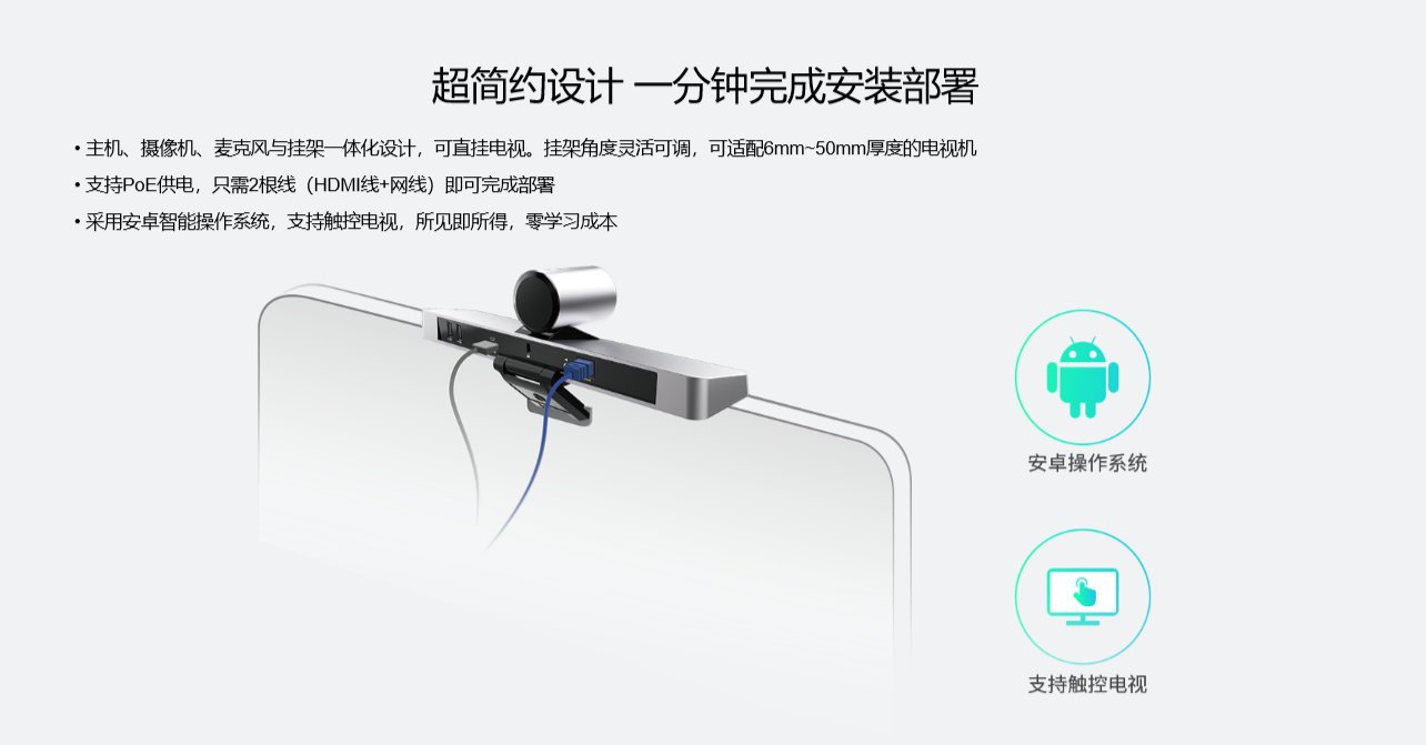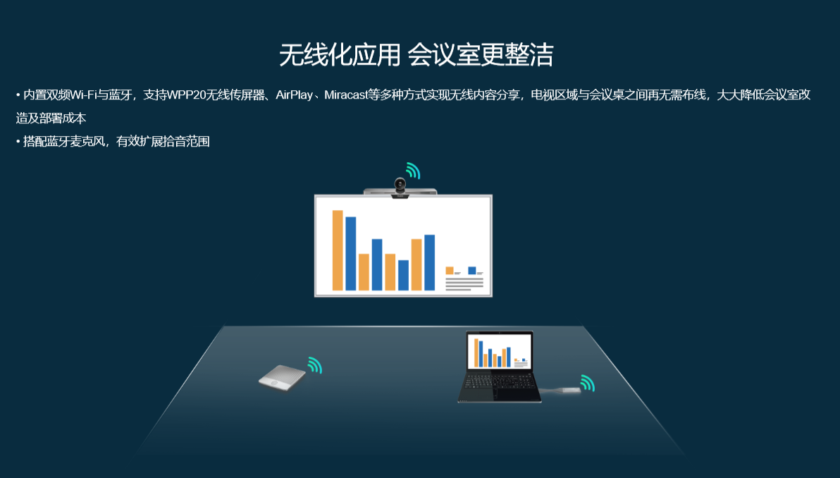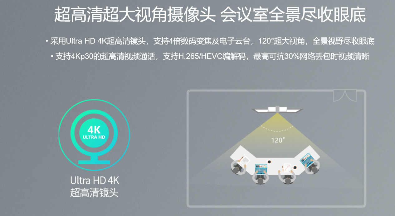 VC210是亿联全新升级的入门级智能视讯终端,采用4K高清镜头,120°大视角,内置6个Beamforming阵列麦克风,人脸检测、智能取景功能,免去用户手动调整,提供更智能的会议体验;采用六合一的一体化设计,支持多种无线投屏方式,支持电子白板等互动协作功能,只需两根线即可简单部署一间微型会议室。
