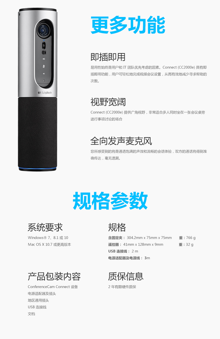 罗技 CC2000e (CONNECT)商务高清会议视频摄像头
