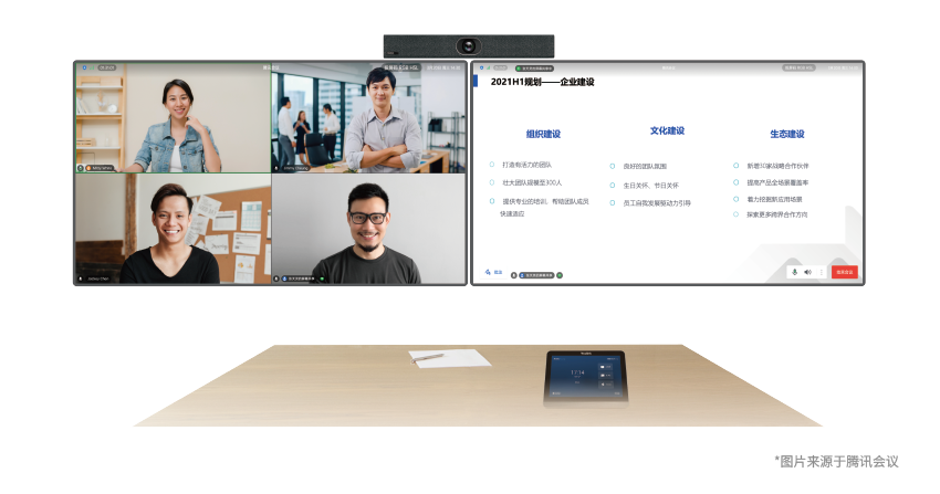 通过腾讯会议Rooms无线投屏,可将个人电脑手机等设备内容一键投屏共享,并进行多人批注、双屏显示,更便捷高效的在多端远程会议中,与团队分享信息或汇报演示。