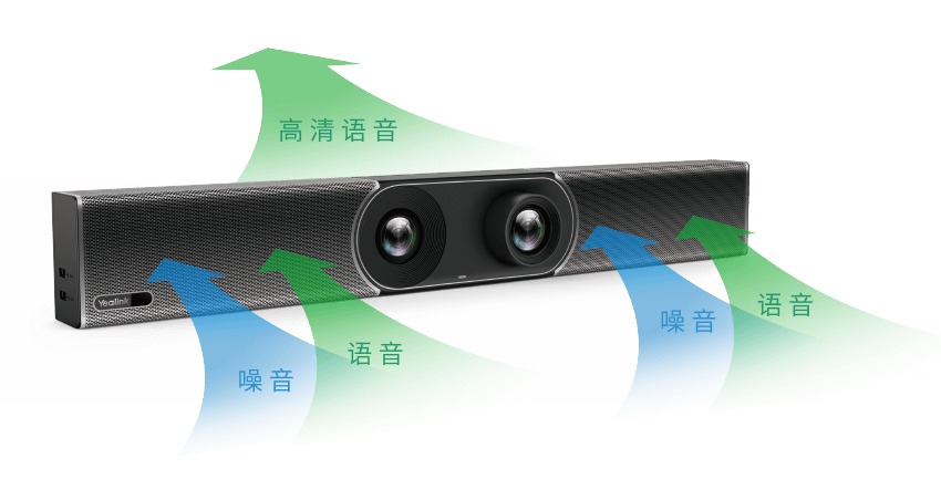 内置8颗MEMS单指向麦克风组成线性麦克风阵列,提升消噪强度及去混响能力。Beamforming算法全新升级,定向拾音更精准,配合多通道回声消除后处理技术和去混响算法,带来6米全双工的优质通话
