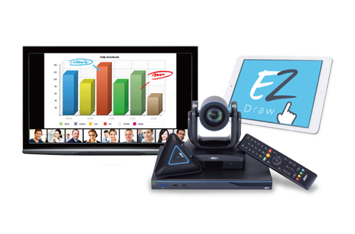 EVC500 搭配 EZDraw 互动笔记软件使用,让视频会议沟通更顺畅。与会者可在平板上利用 EZDraw 在分享的档案上书写或注记,视频会议与平板的协同使用让开会更有效率,大幅提升商务沟通的效率及方便性。