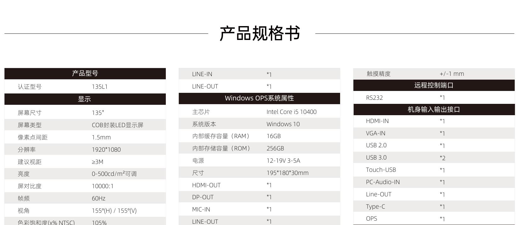 皓丽135吋触控led一体机135L1