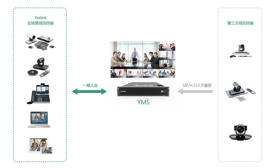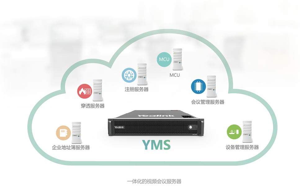 亿联YMS视频会议服务器(Yealink Meeting Server)是一款多功能视频会议服务器,集成了MCU、注册服务器、穿透服务器、会议管理服务器、设备管理服务器和企业地址簿服务器为一体,身材小、能量大,为企业提高会议效率、节省资金与人力成本。